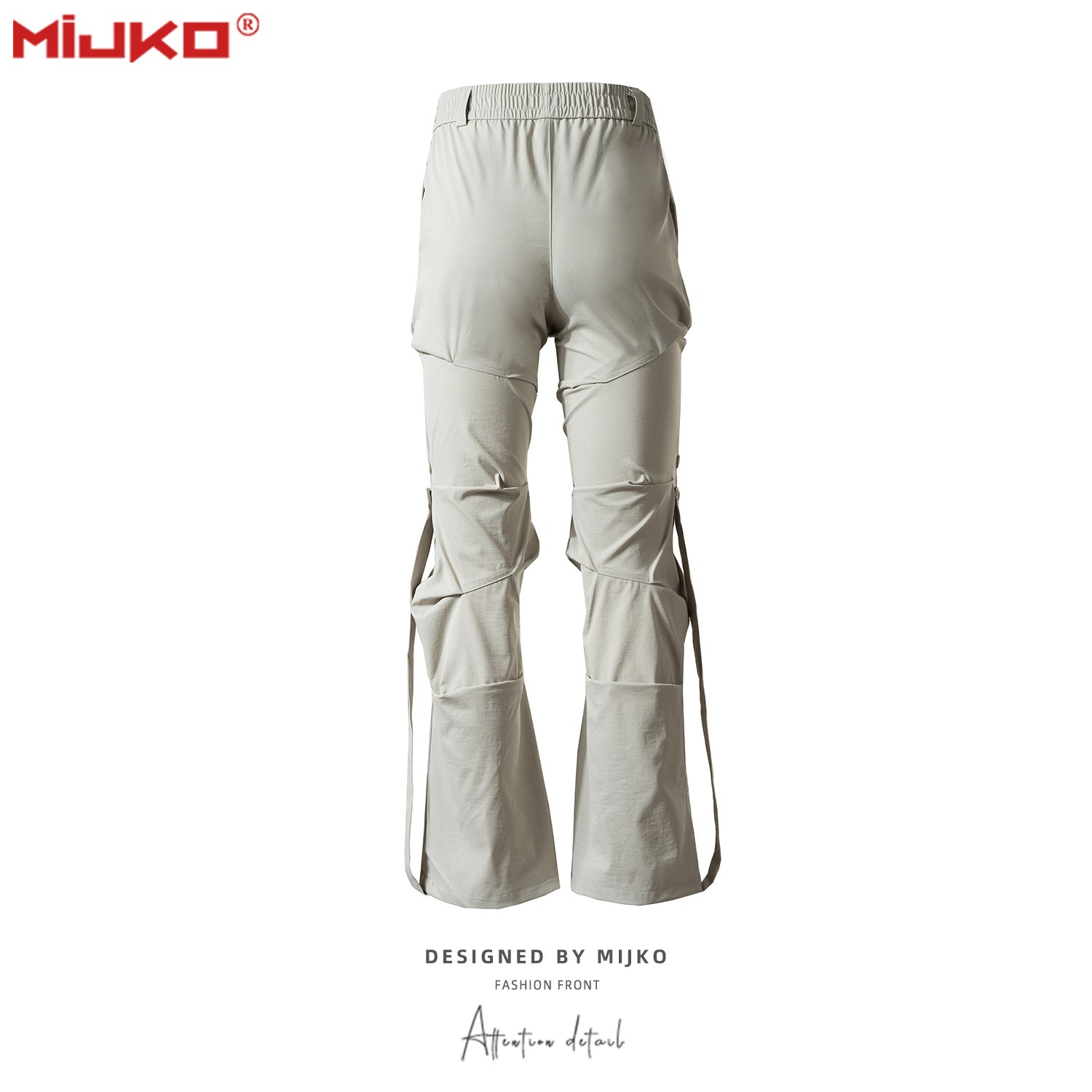 MIJKO Mens Vintage Pants Button Ribbon Broadly Feet Casual Pants