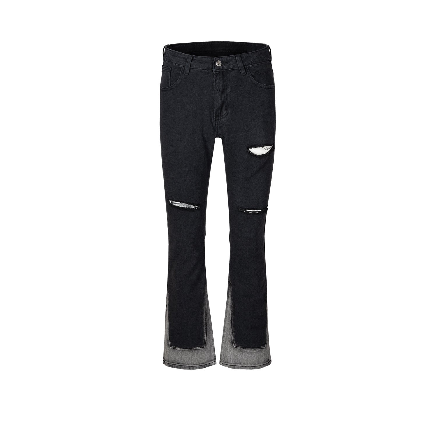 MIJKO Mens Vintage Pants Splicing Knife Cut Ripped Unisex Jeans
