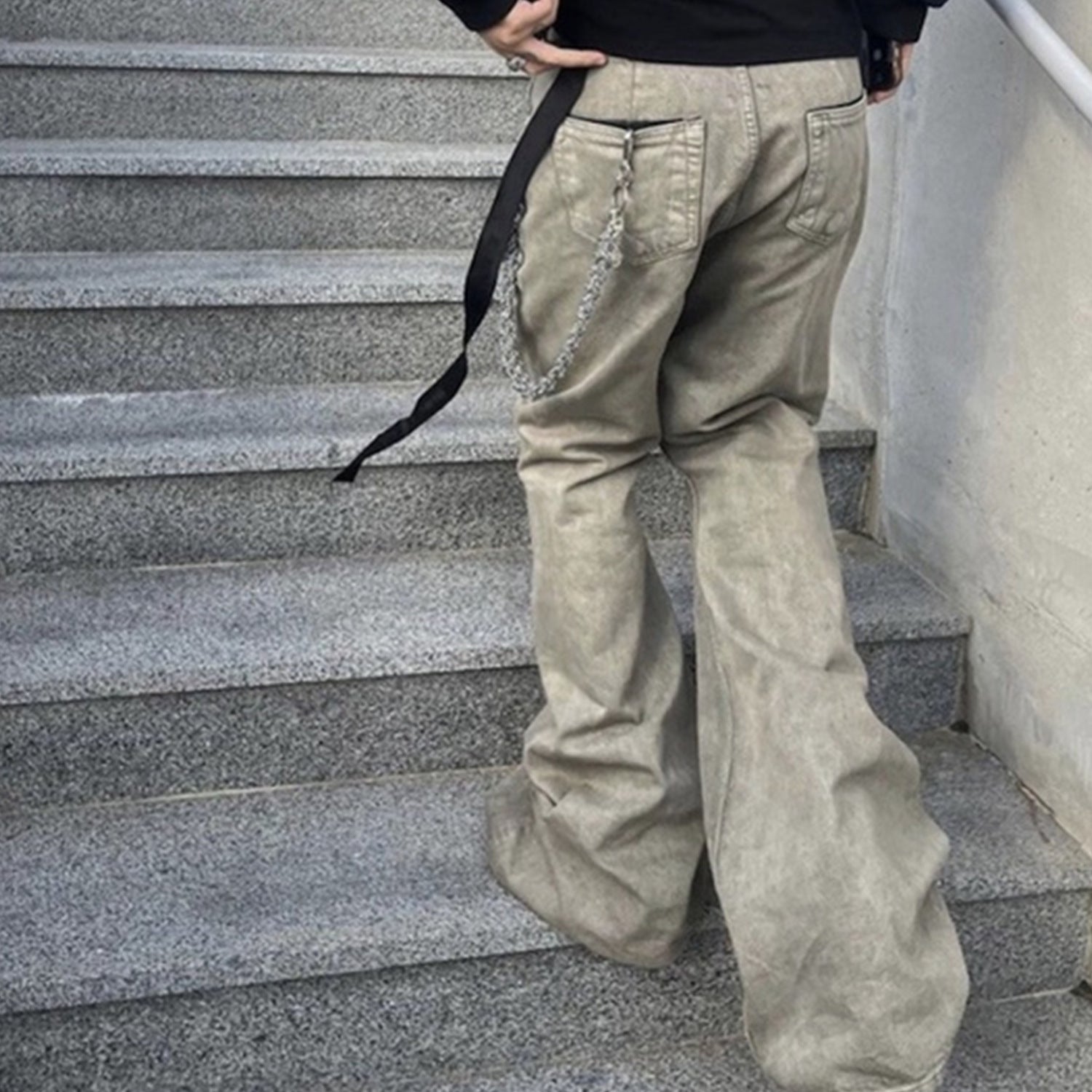 MIJKO Mens Vintage Pants Distressed High-stretch Bootcut jeans