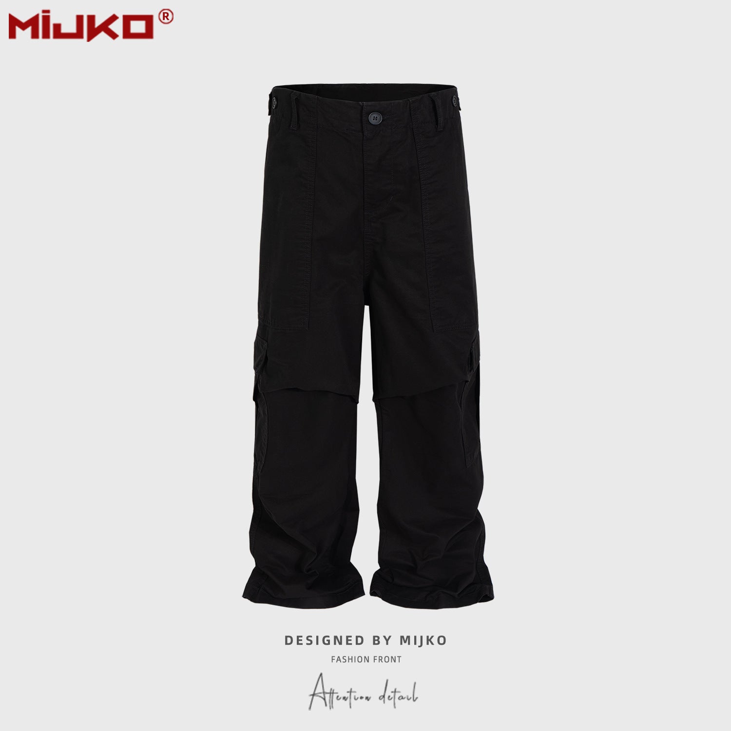 MIJKO Men Vintage Pants Multi-Pocket Straight Casual Loose Pants