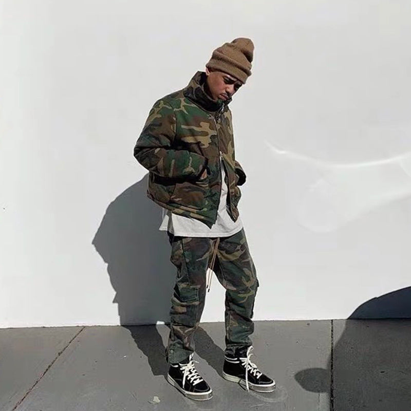 MIJKO Mens Vintage Pants Multi-pocket-breasted camouflage slacks