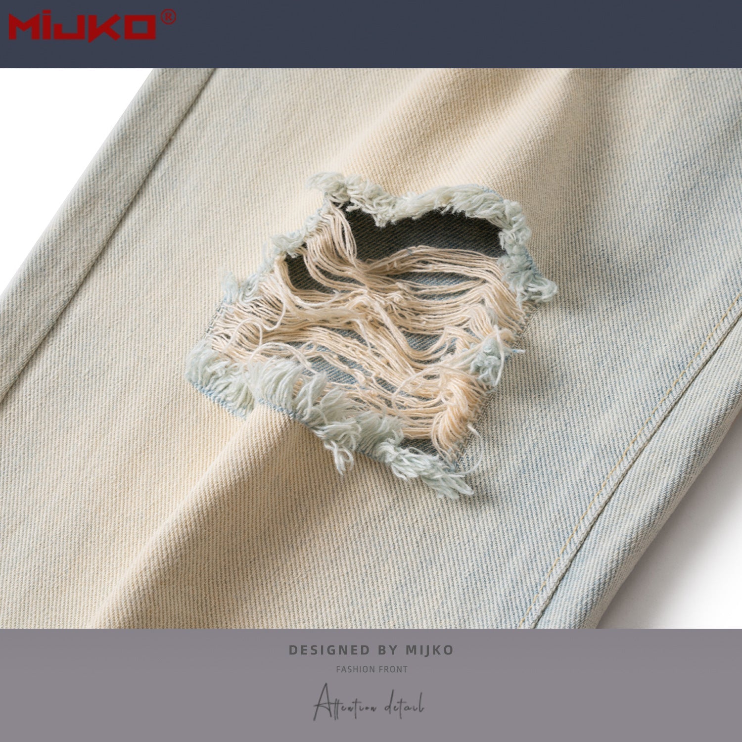 MIJKO Mens Vintage Pants Ripped Wash Water Old Jeans