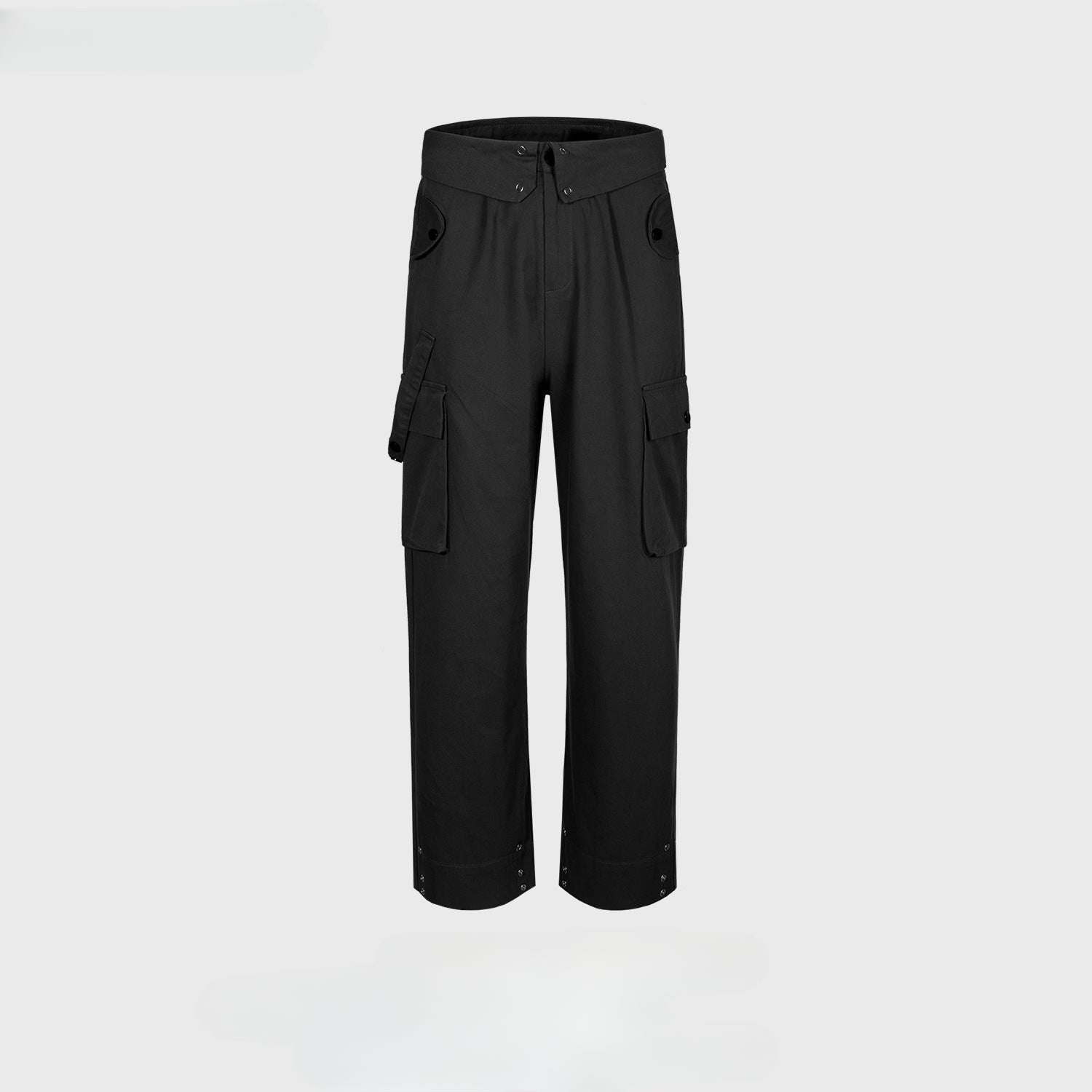 MIJKO Men Vintage Pants MIJKO Straight Multi-Pocket Cut-Over Cuff Waist Casual Pants