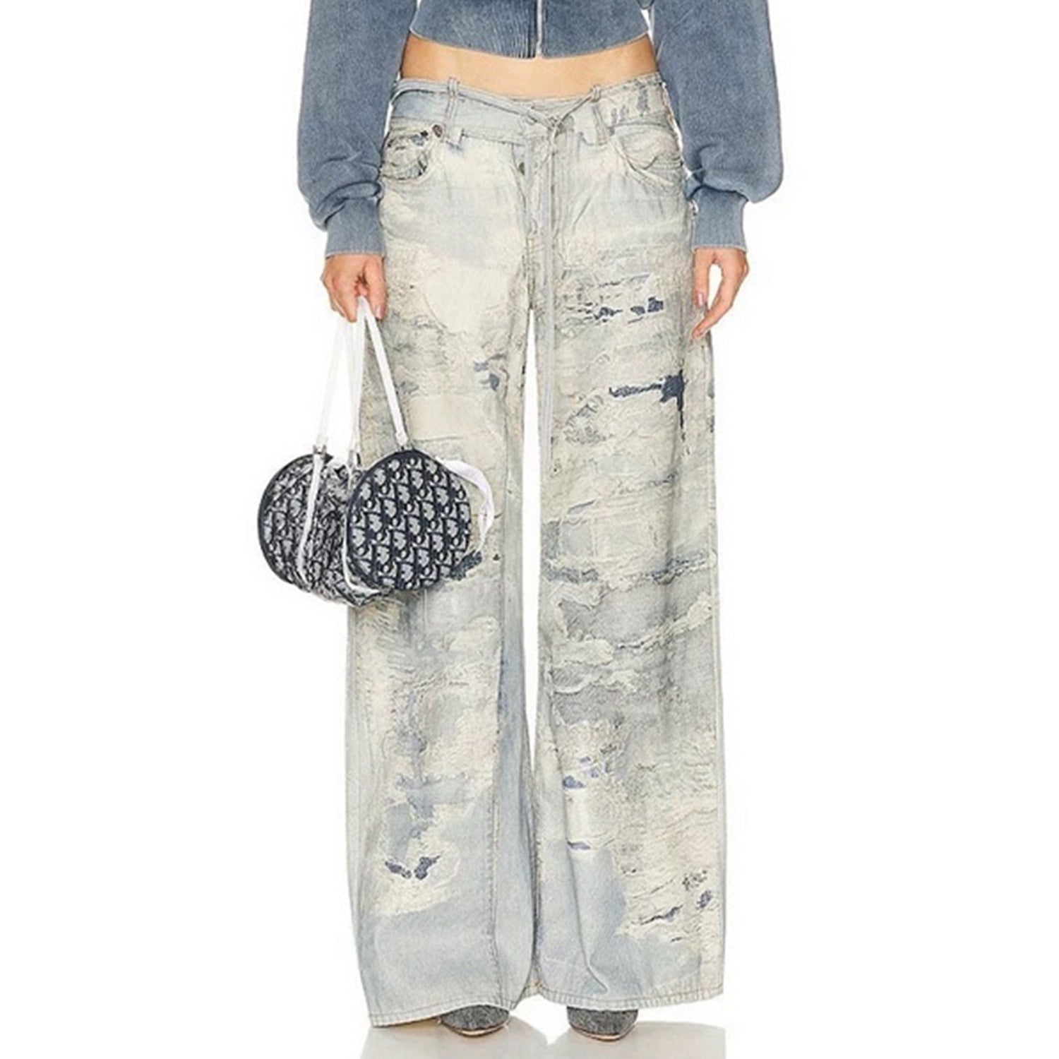 MIJKO Men Vintage Pants MIJKO straight-leg pants make old washed 3D printed jeans