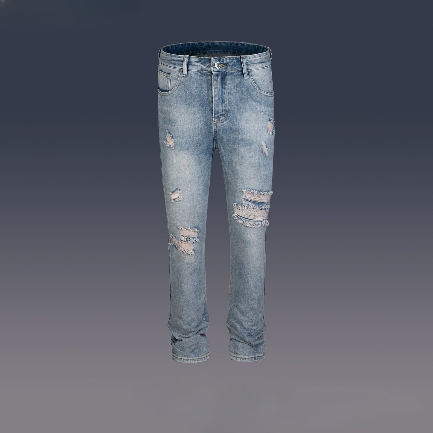 MIJKO Men's Vintage Pants MIJKO washed trousers men's and women's ripped slim-fitting old jeans