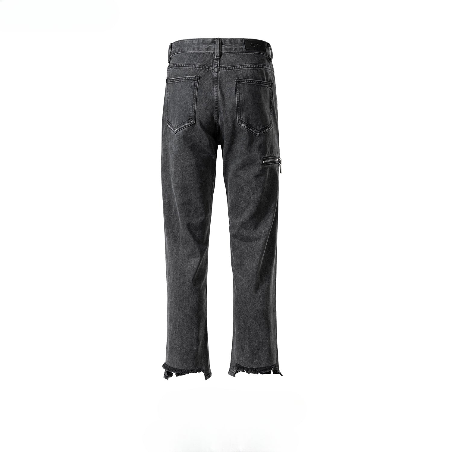 MIJKO Men's Vintage Pants MIJKO Ragged Pants Trousers Men's and Women's Zipper Washed Jeans