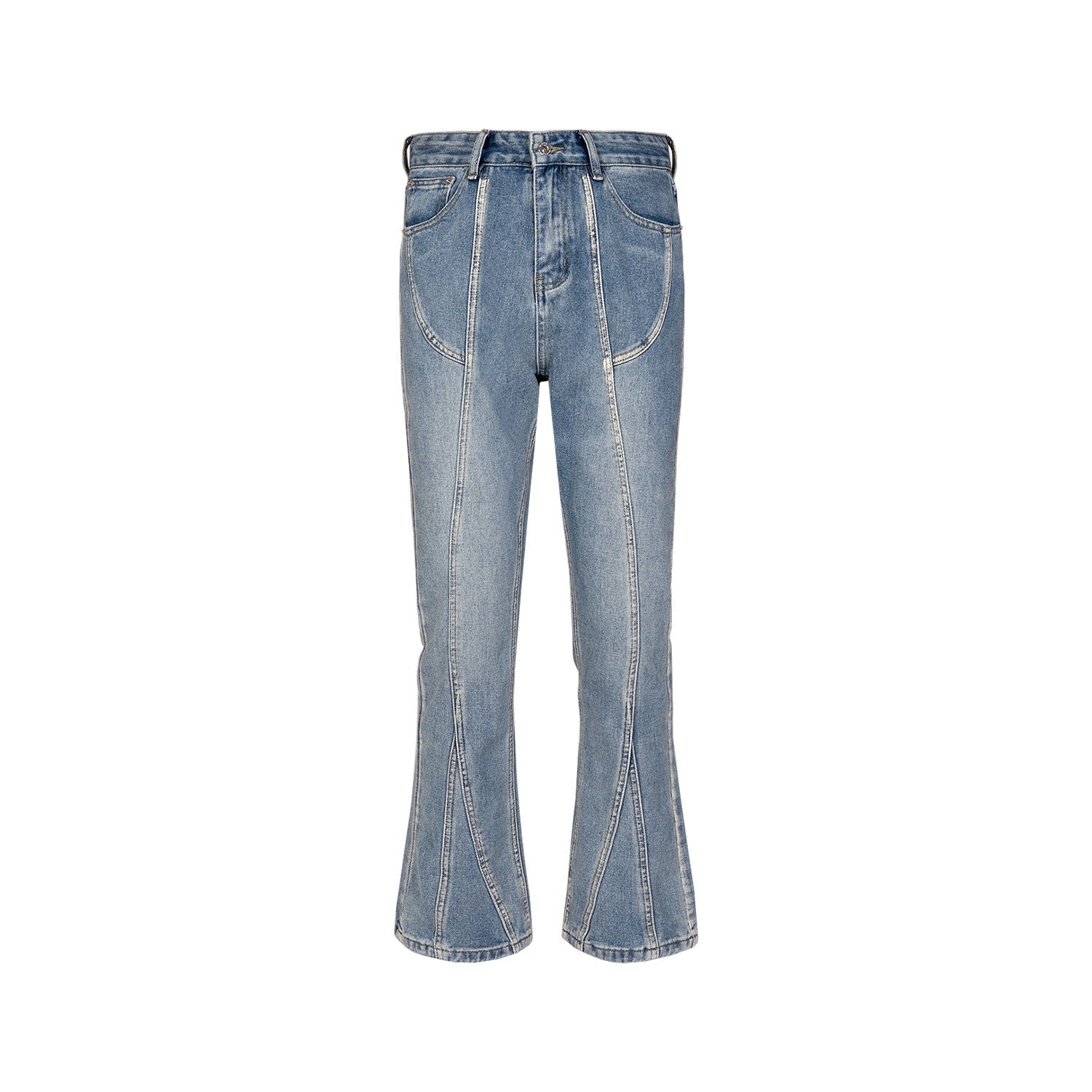 MIJKO Men's Vintage Pants MIJKO splicing men's and women's slightly washed white retro jeans