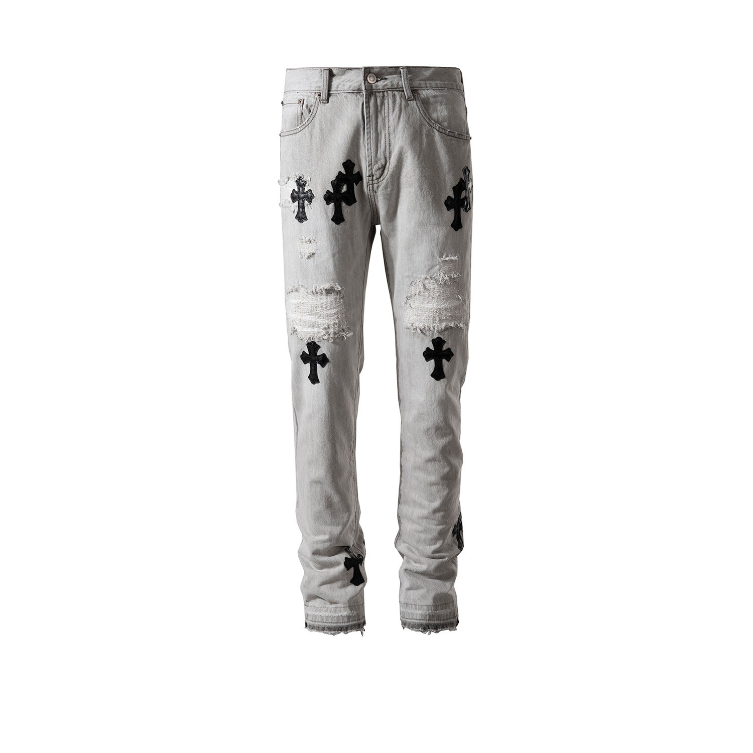 MIJKO Men's Vintage Pants MIJKO ripped trousers men's and women's washed water old jeans