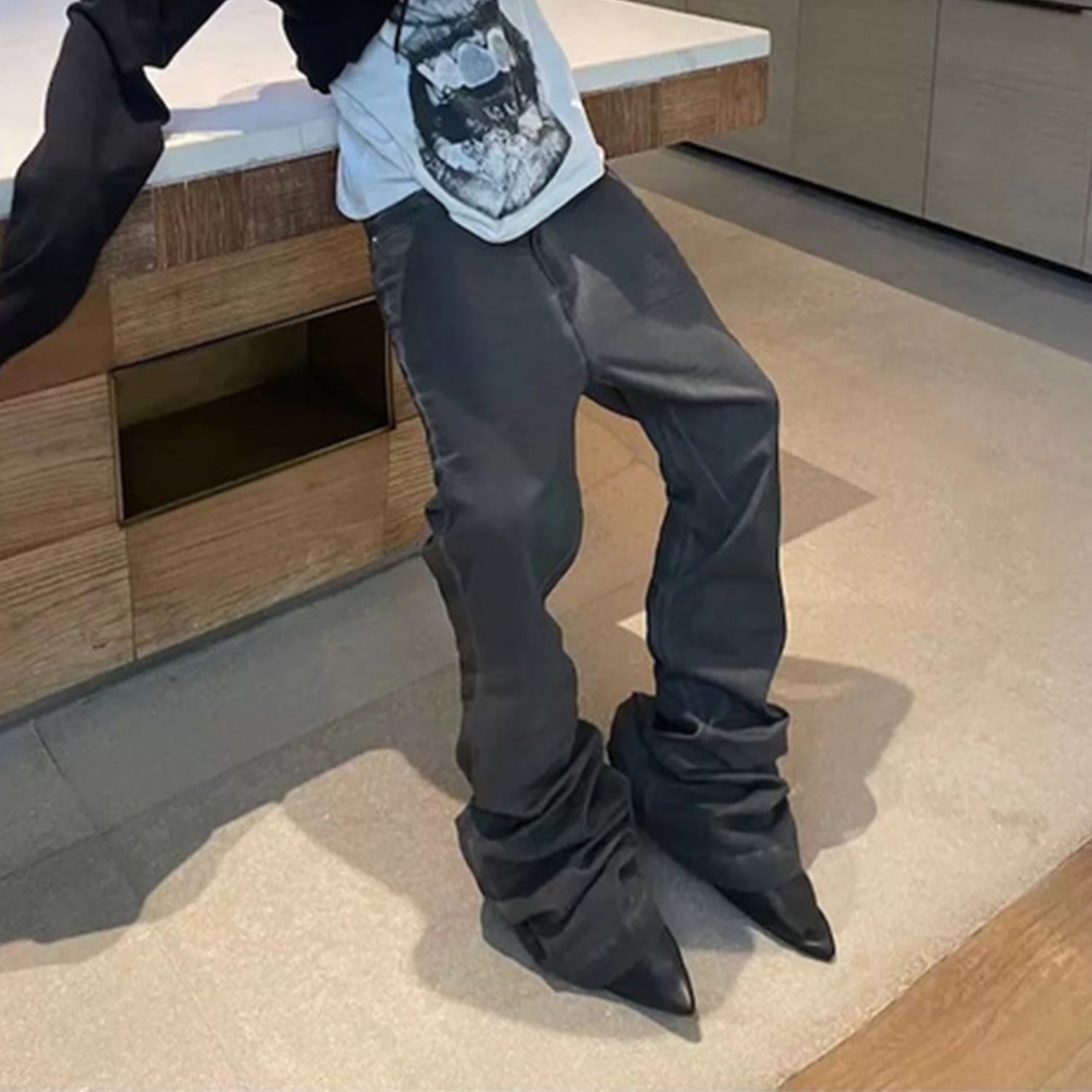 MIJKO Men Vintage Pants MIJKO Washed Slim Fit Old Micro-Flared Jeans