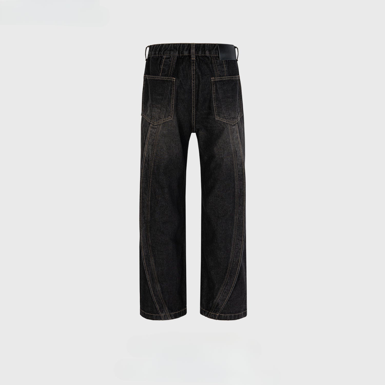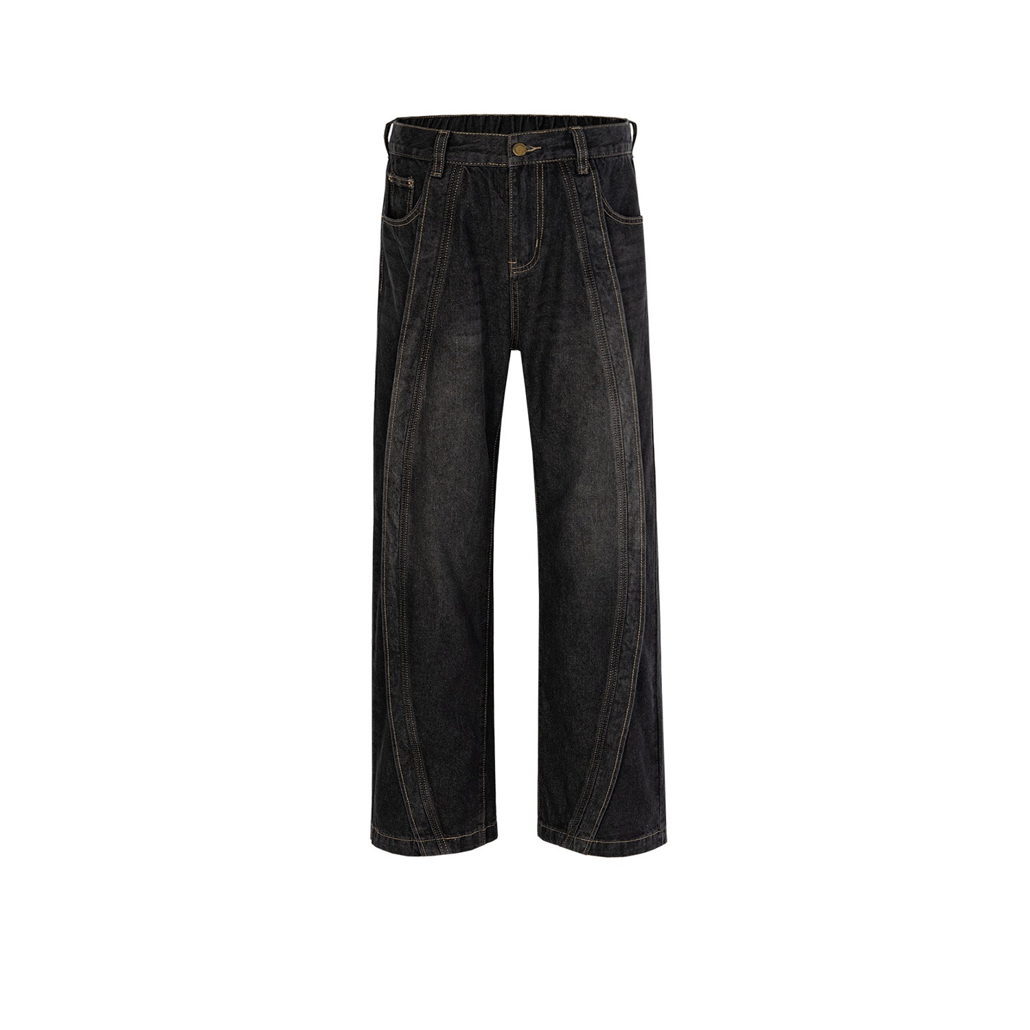 MIJKO Men's Vintage Pants MIJKO Splicing Pants Men's and Women's Waist Straight Jeans