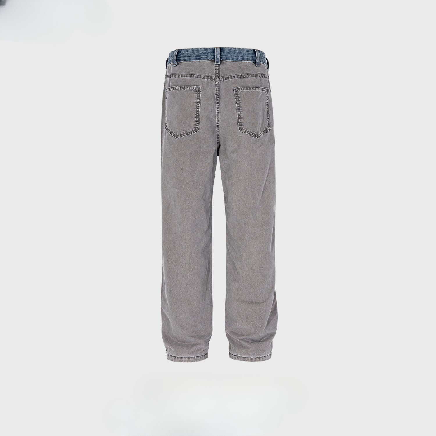 MIJKO Men Vintage Pants MIJKO Men's Splicing Trousers Straight Wash High Street Trendy Jeans