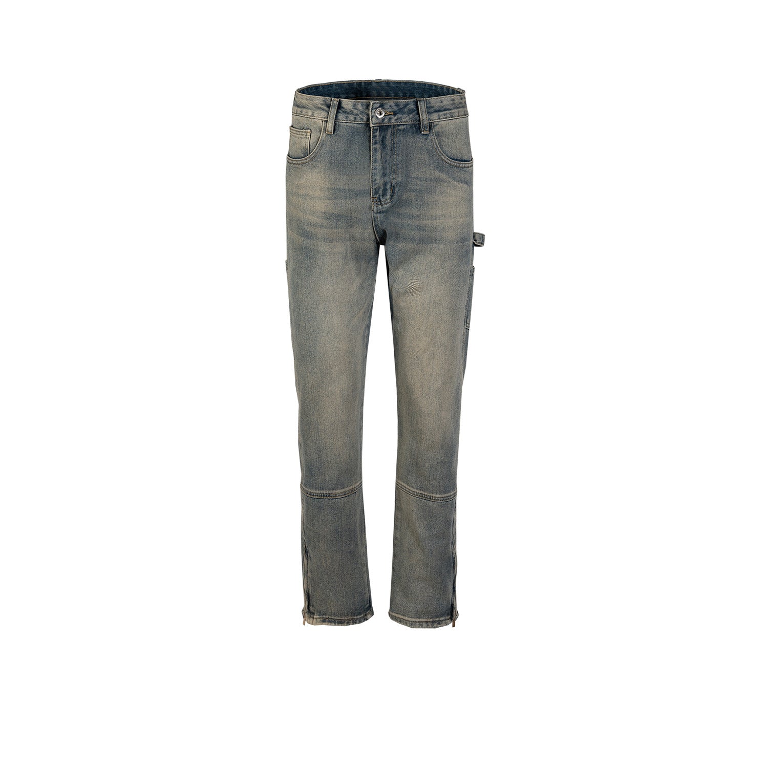 MIJKO Men's Vintage Pants MIJKO washed old trousers men's and women's wide-footed jeans