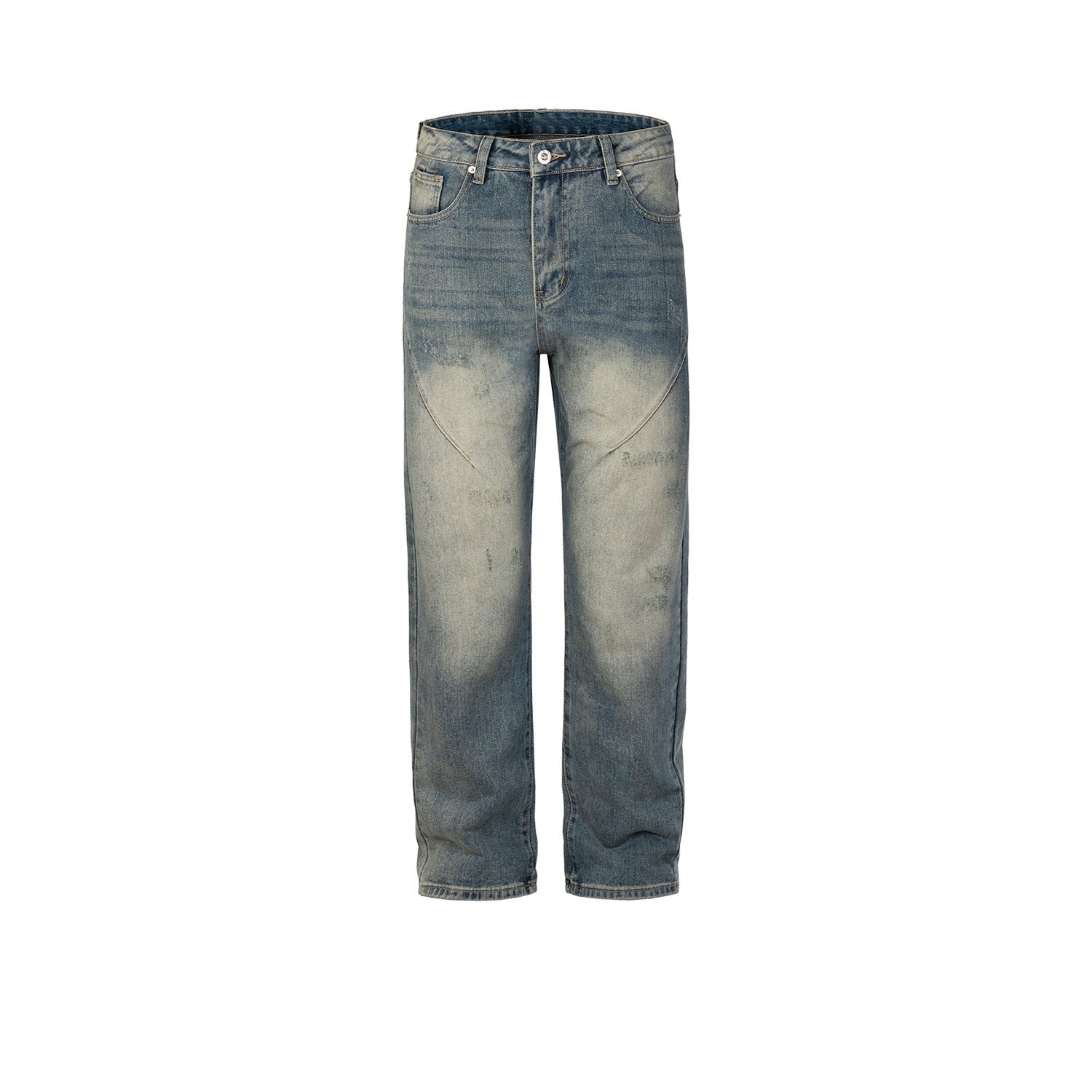 MIJKO Mens Vintage Pants MIJKO Splicing Bug Bite Damage Trousers Straight High Street Jeans