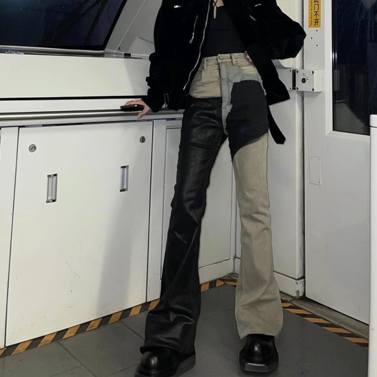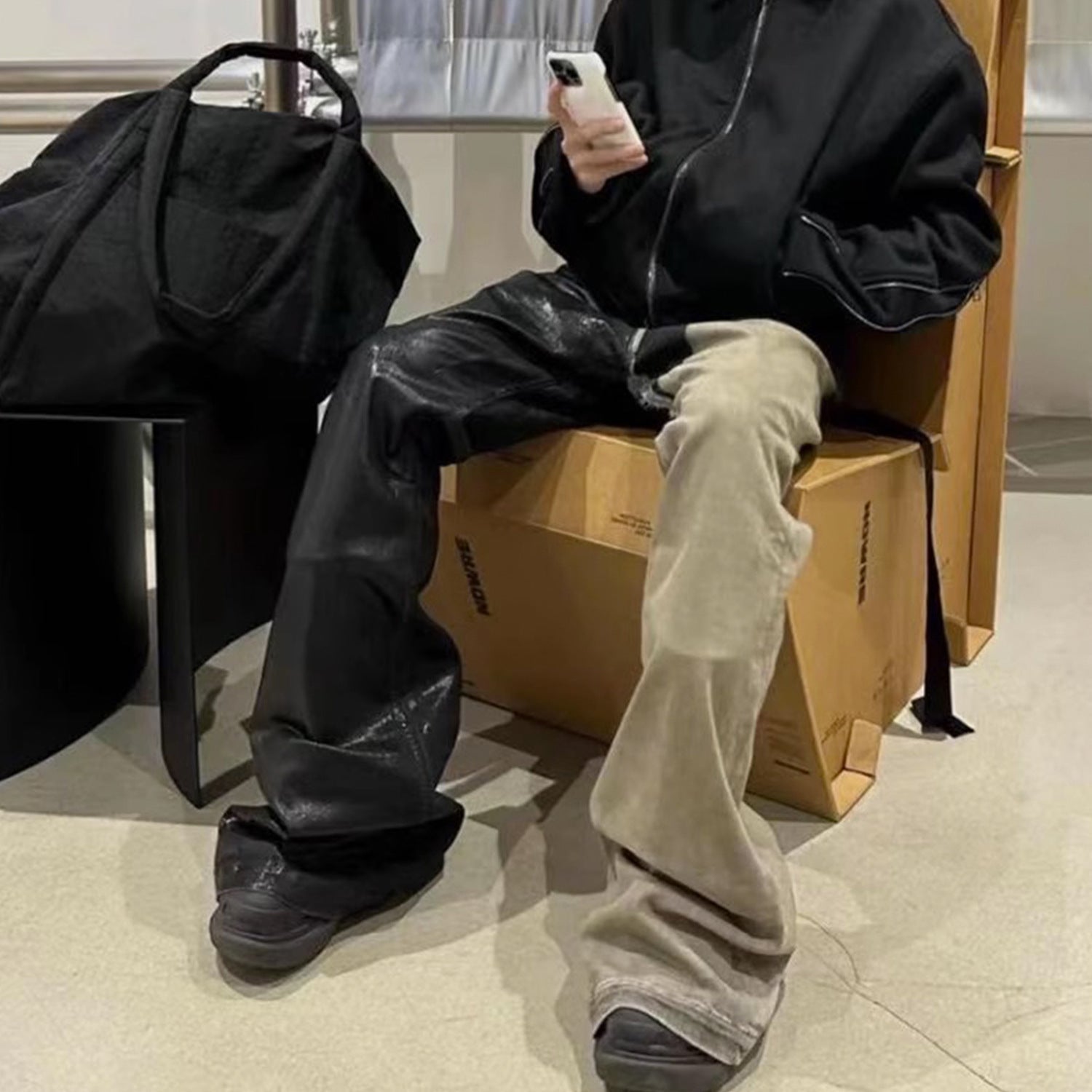 MIJKO Mens Vintage Pants MIJKO RICK wind splicing coated micro-pull jeans
