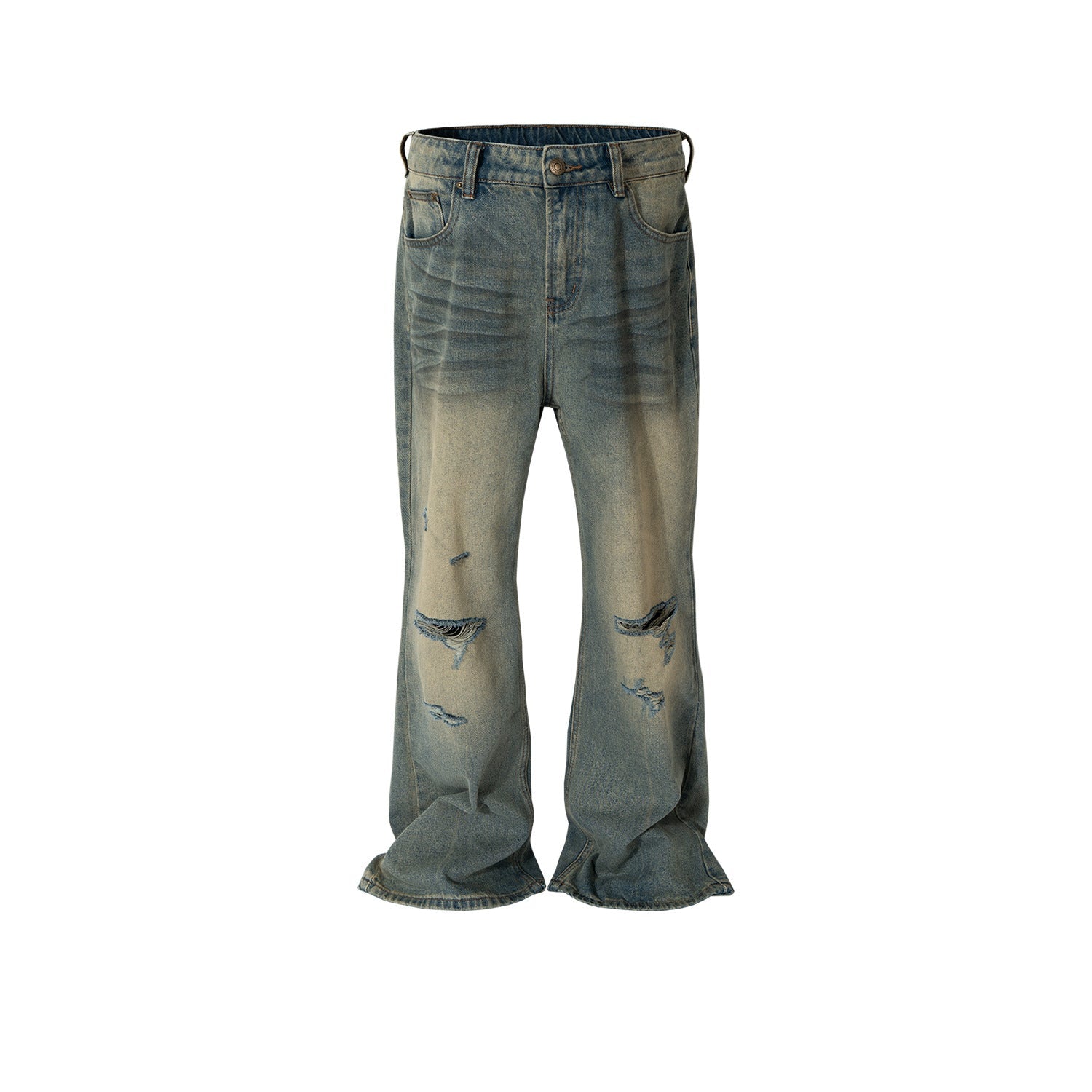 MIJKO Men Vintage Pants MIJKO washed old trousers slightly ripped blue jeans