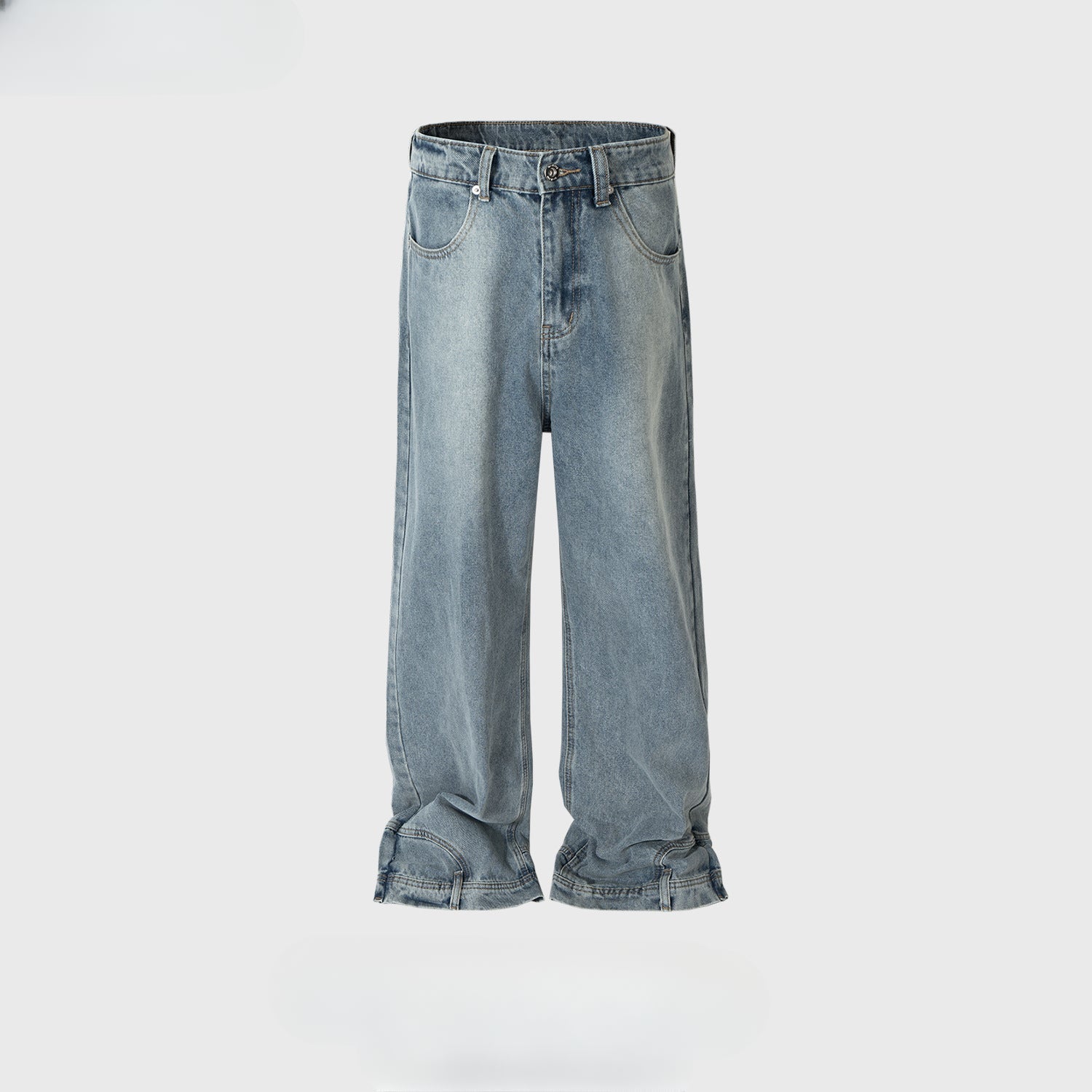 MIJKO Men's Vintage Pants MIJKO Men's Women's Design Trousers Men's and Women's Straight Washed Jeans