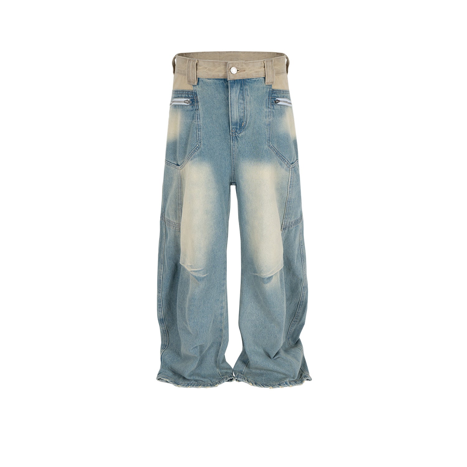 MIJKO Men Vintage Pants MIJKO washed and old design jeans men's and women's straight-leg pants