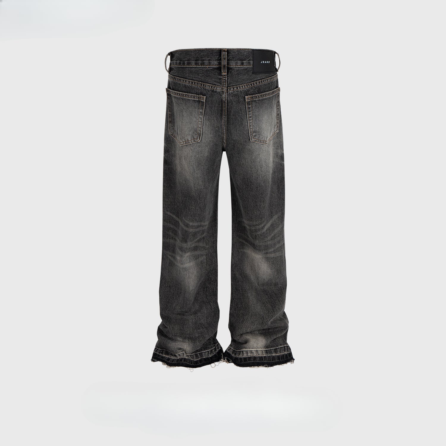MIJKO Mens Vintage Pants MIJKO textured trousers polished white whiskers stitched jeans