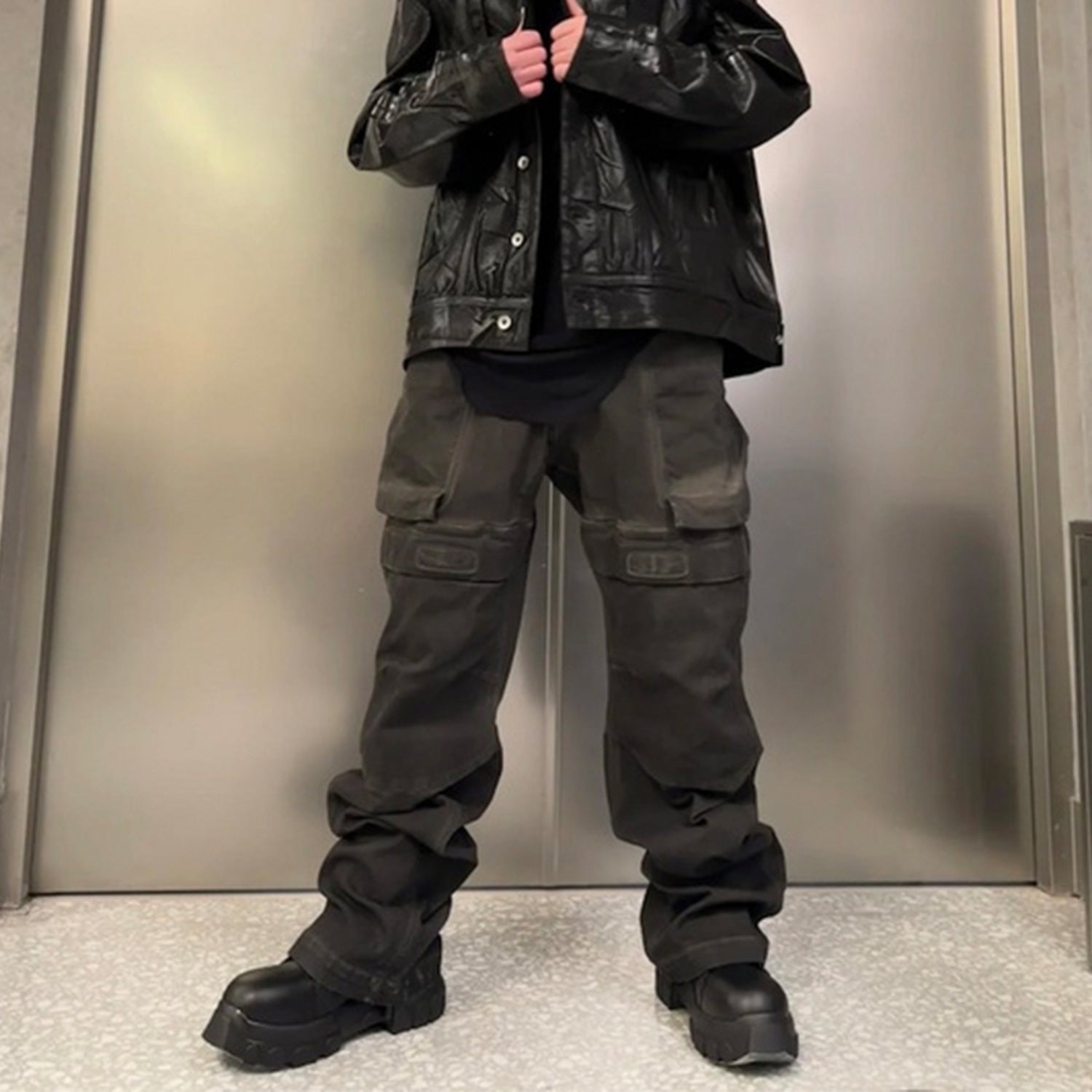 MIJKO Mens Vintage Pants MIJKO Stegosaurus Cargo Dirty Workwear Jeans