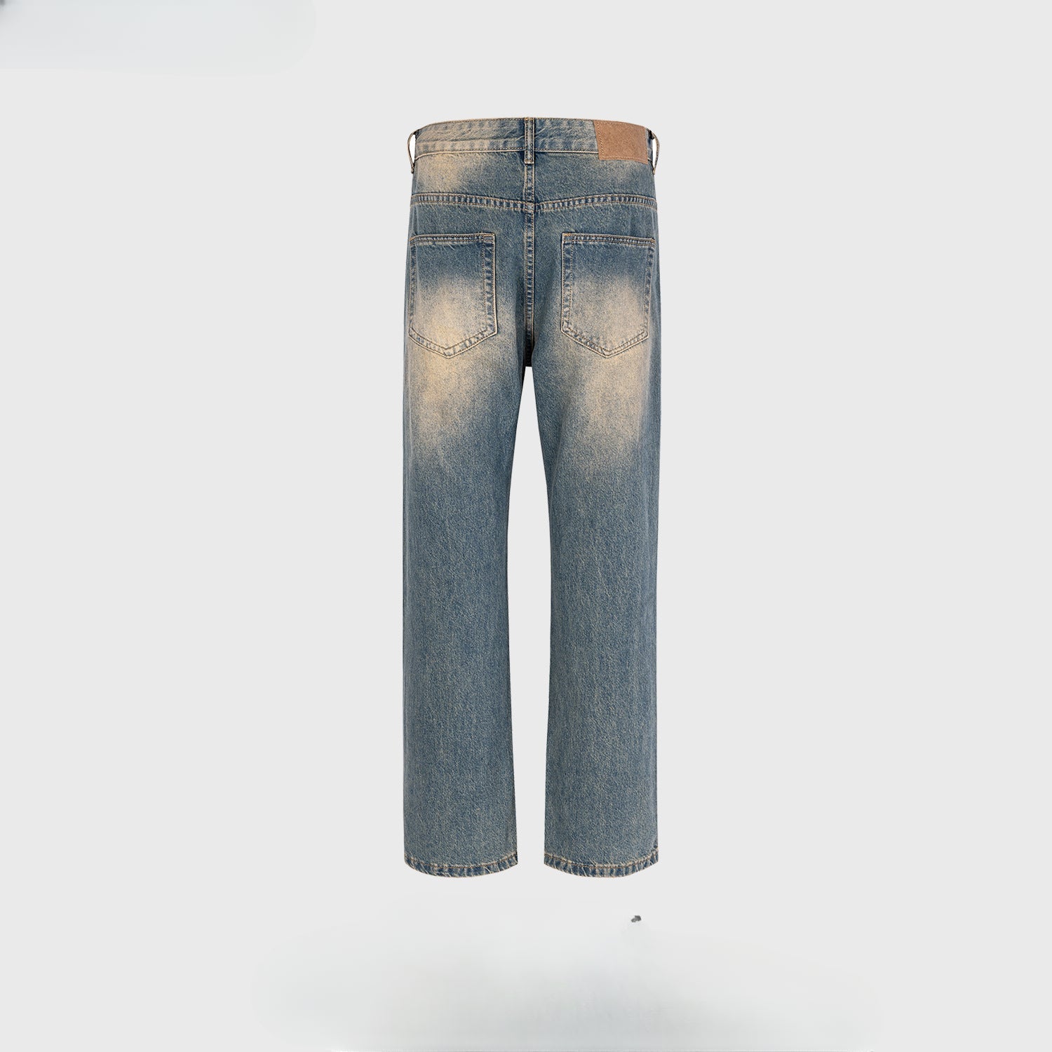 MIJKO Men Vintage Pants MIJKO High Street Washing Water Old Ripped Trousers Ripped Jeans