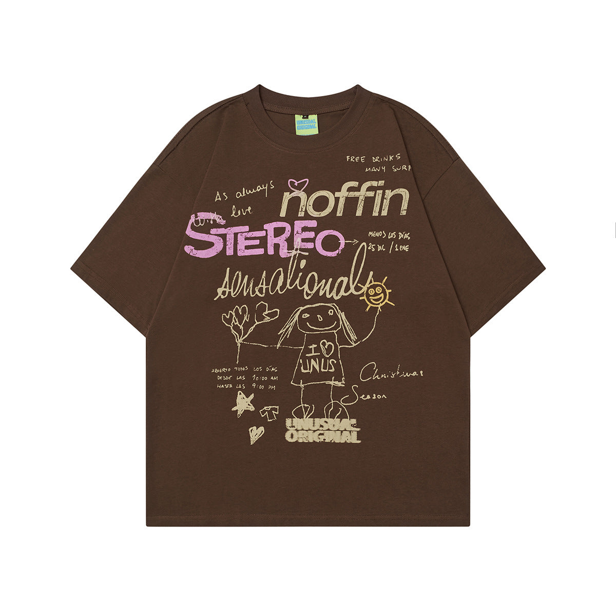 Unisex T-shirts Summer Painting Cartoon Men's Loose Short Sleeve T-Shirt