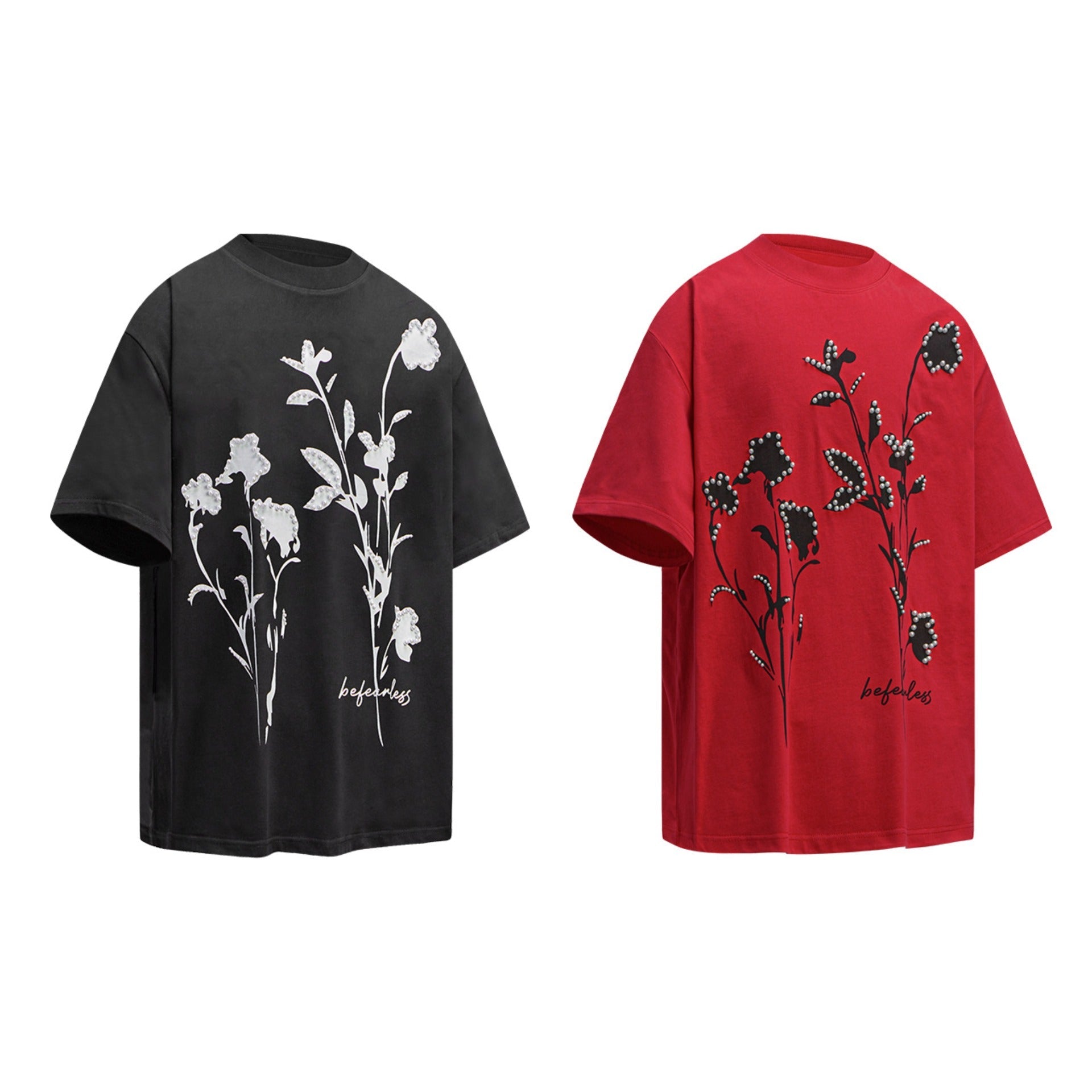 Unisex T-shirts Summer Printed Beaded Men's Loose Crew Neck Short Sleeve T-Shirt
