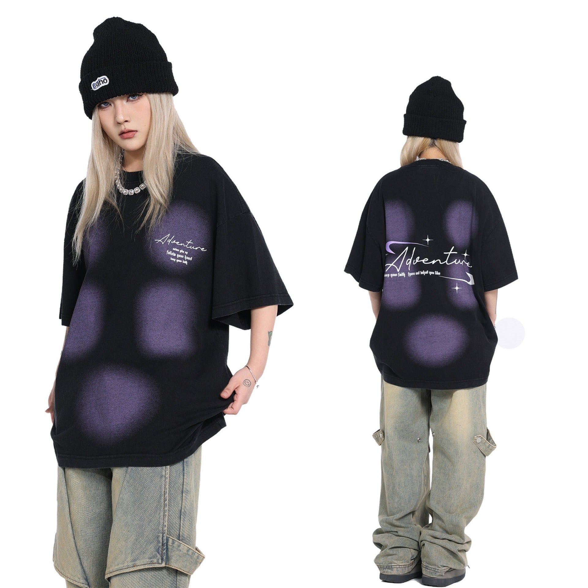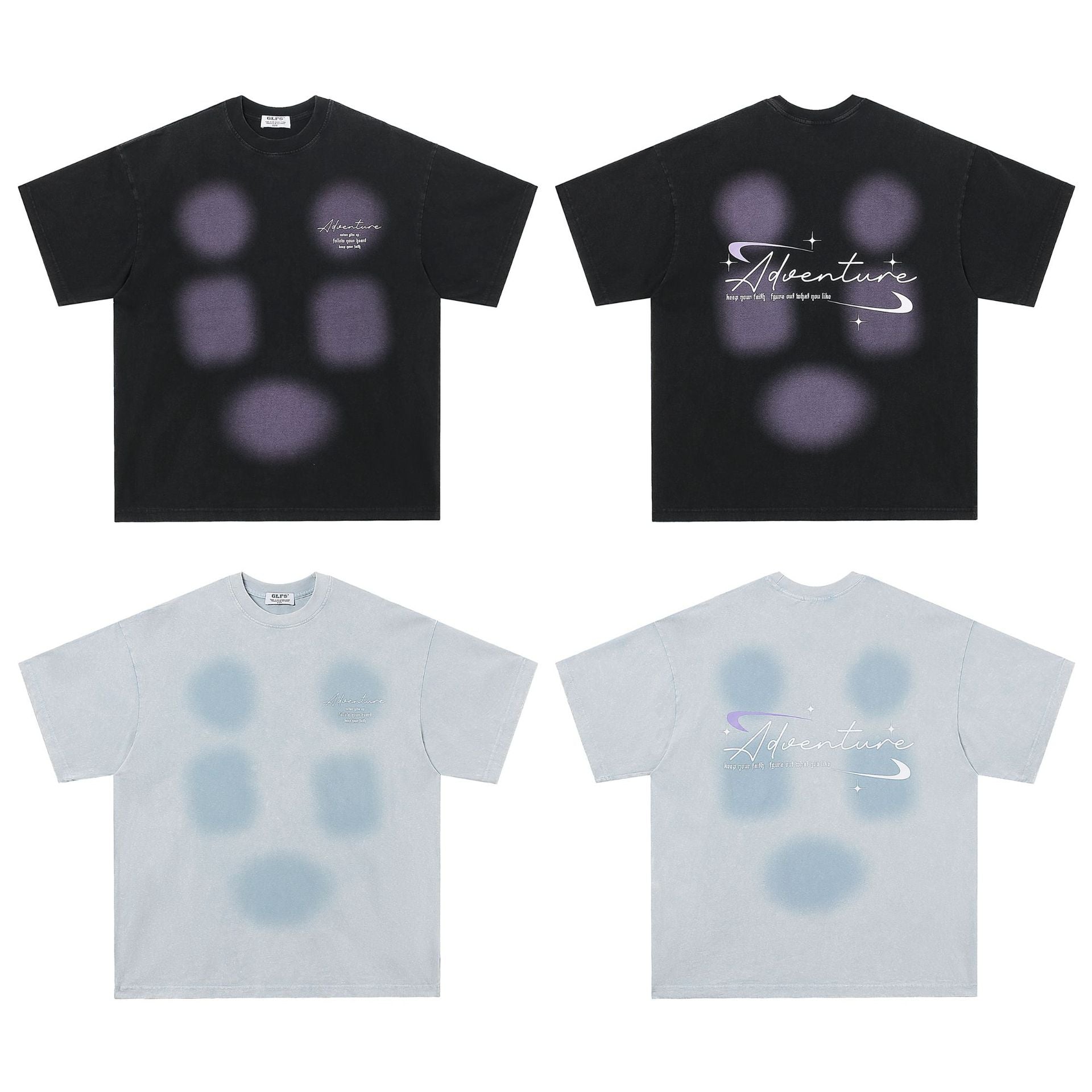 Unisex T-shirts summer washed old inkjet men's loose short-sleeved T-shirt