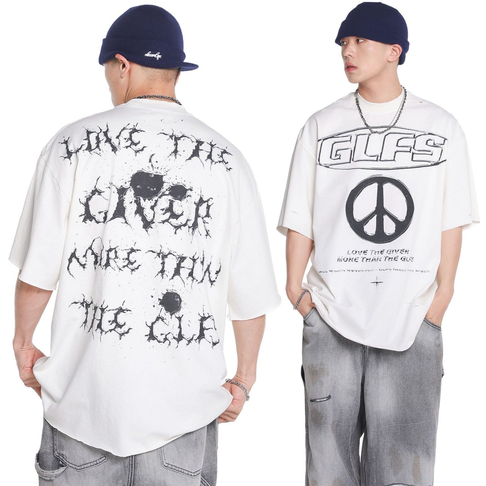 Unisex T-shirts Summer Letter Map Men's Loose Short Sleeve T-Shirt