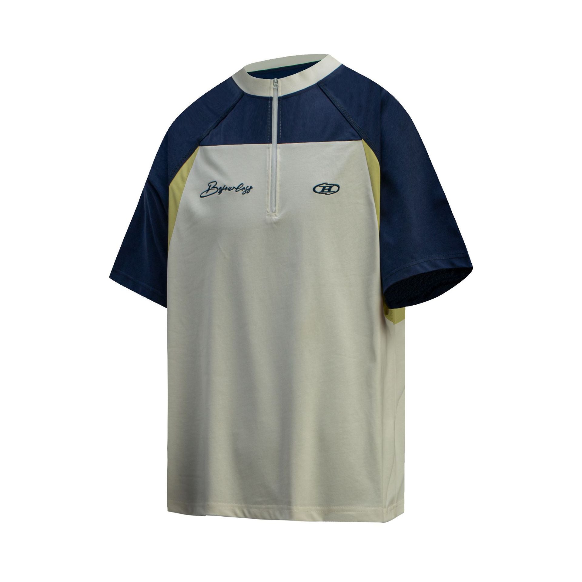 Unisex T-shirts Street Vintage Splicing Color Matching Men's Loose Short Sleeve T