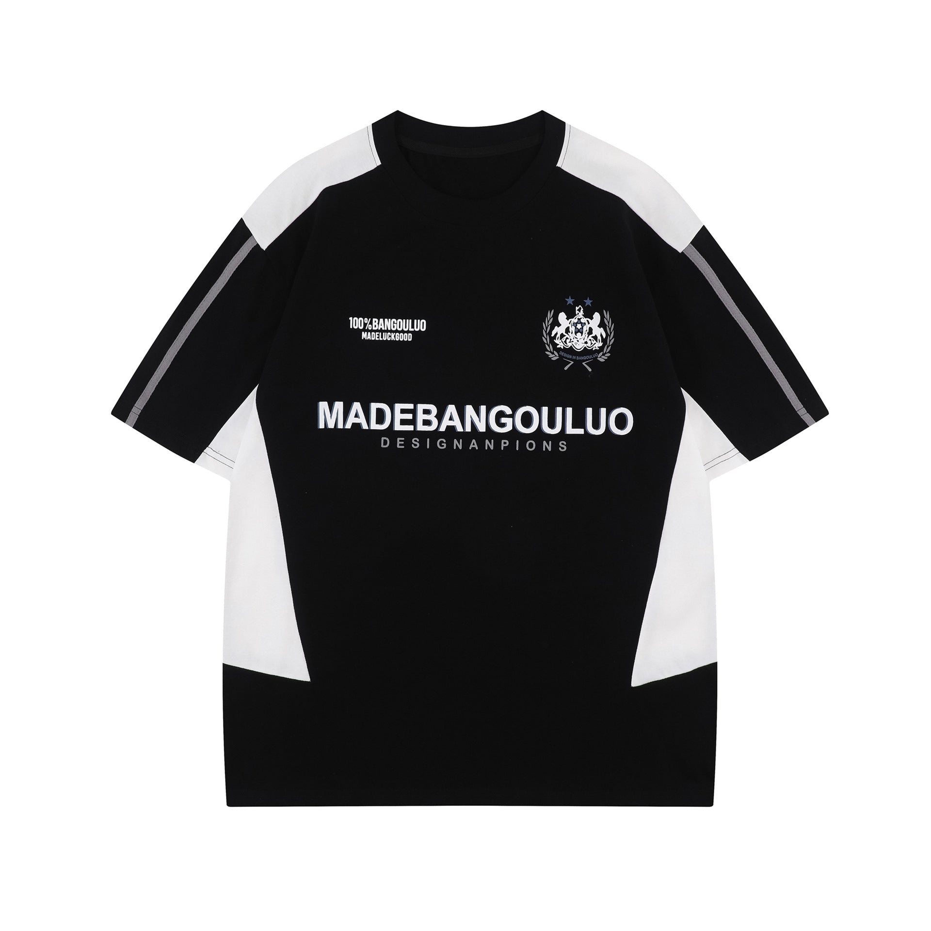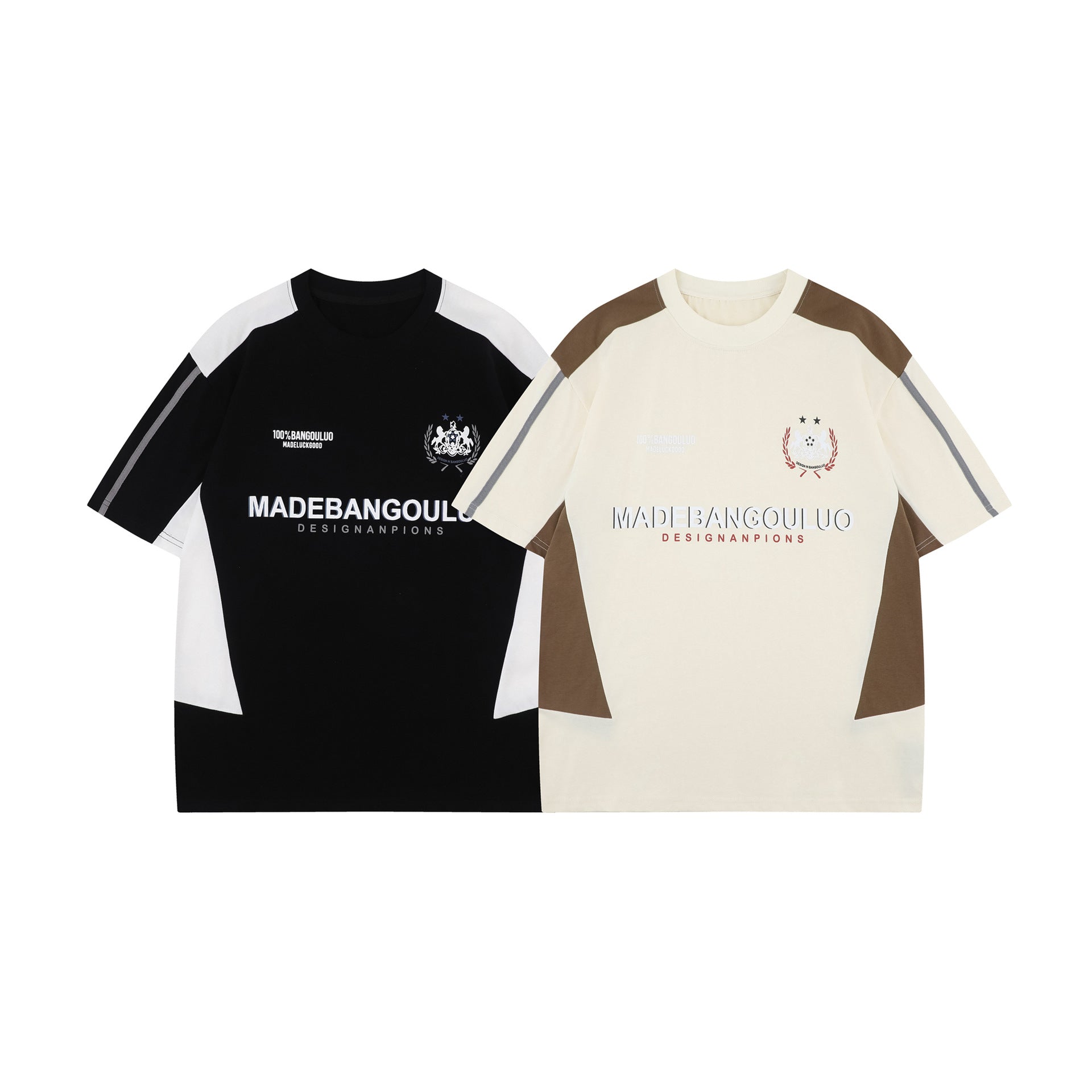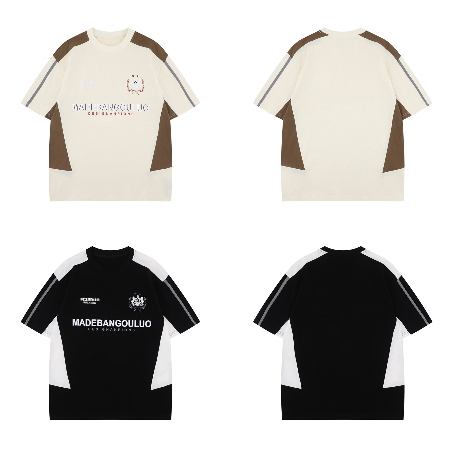 Unisex T-shirts Summer Splicing Letter Pattern Men's Loose Short Sleeve T-Shirt